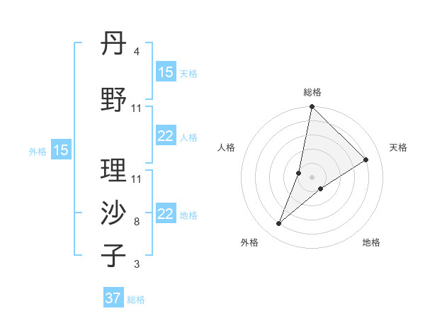 丹野 理沙子さんを姓名の画数から五運を鑑定