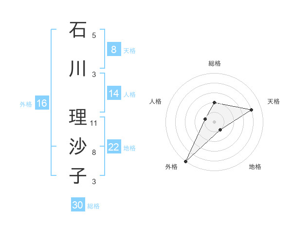 石川 理沙子さんを姓名の画数から五運を鑑定
