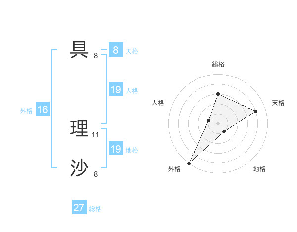 具 理沙さんの総格は27画の3点!