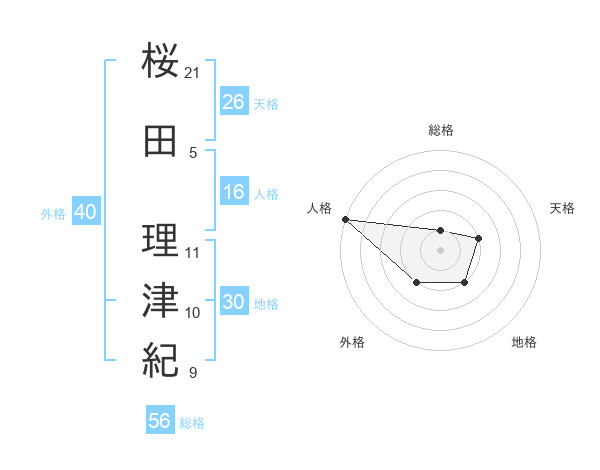 桜田 理津紀さんを姓名の画数から五運を鑑定