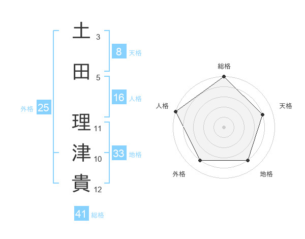 土田 理津貴さんを姓名の画数から五運を鑑定