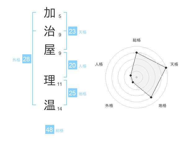 加治屋 理温さんの天格は23画の5点!