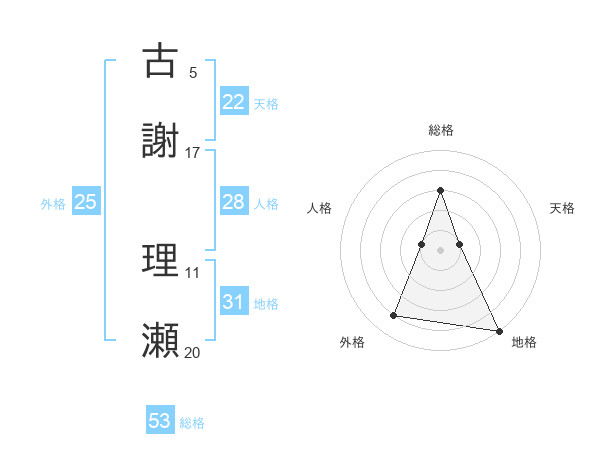 古謝 理瀬さんを姓名の画数から五運を鑑定