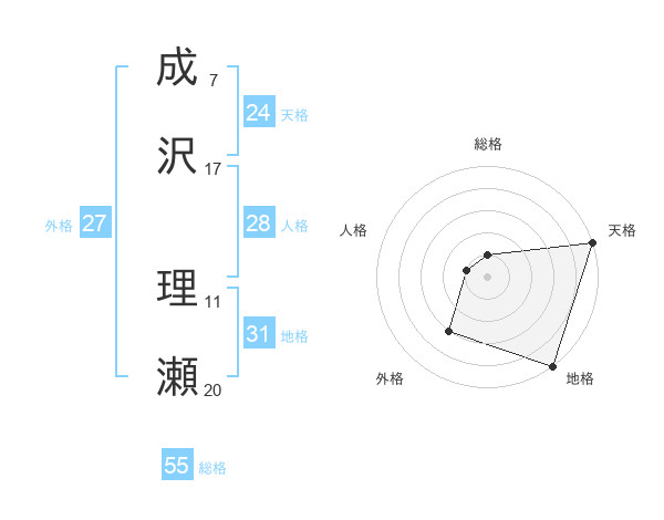成沢 理瀬さんの天格は24画の5点!
