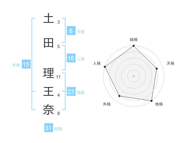 土田 理王奈さんを姓名の画数から五運を鑑定