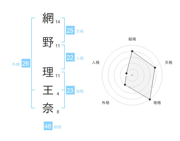 網野 理王奈さんを姓名の画数から五運を鑑定