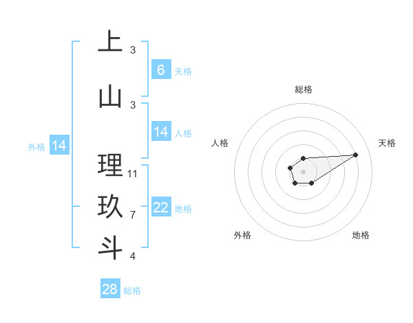 上山 理玖斗さんを姓名の画数から五運を鑑定