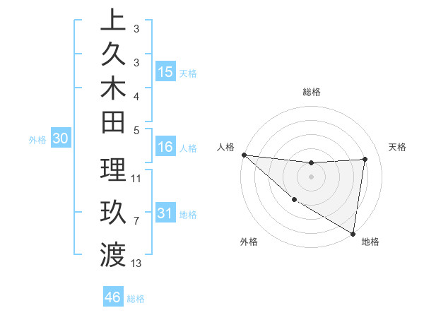 上久木田 理玖渡さんを姓名の画数から五運を鑑定