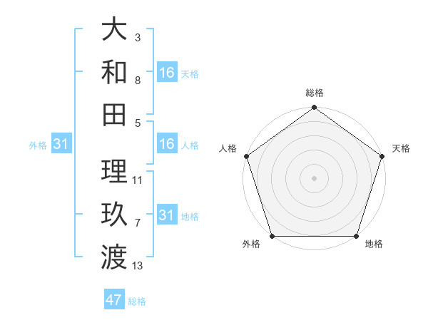 大和田 理玖渡さんを姓名の画数から五運を鑑定