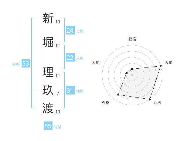 新堀 理玖渡さんの総格は55画の1点