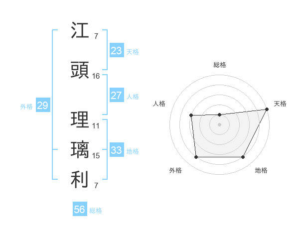 江頭 理璃利さんを姓名の画数から五運を鑑定