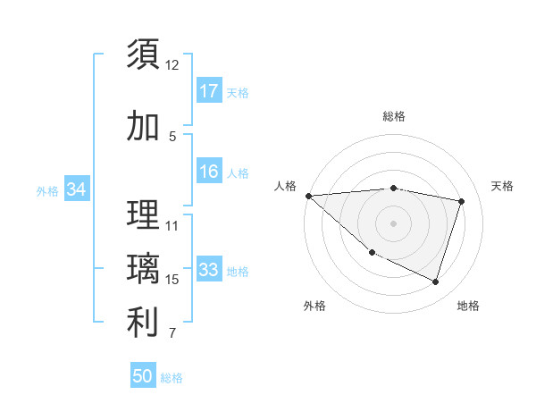 須加 理璃利さんの総格は50画の2点!