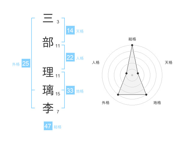 三部 理璃李さんの総格は47画の5点!