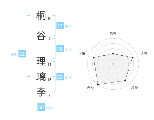 桐谷 理璃李さんの天格は17画の4点!