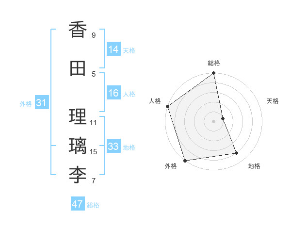 香田 理璃李さんの総格は47画の5点!