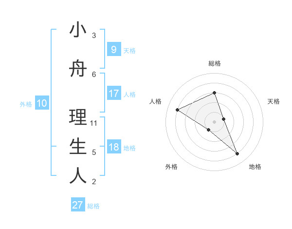 小舟 理生人さんを姓名の画数から五運を鑑定