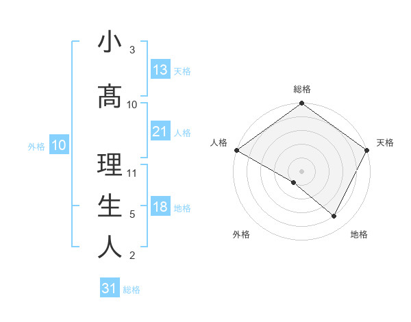 小髙 理生人さんを姓名の画数から五運を鑑定