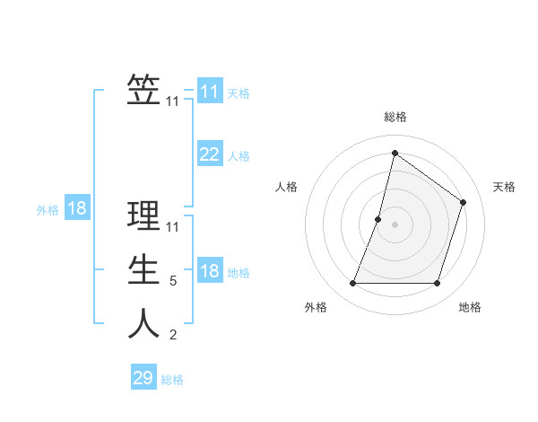 笠 理生人さんの総格は29画の4点!