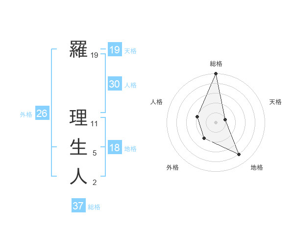 羅 理生人さんの天格は19画の1点!