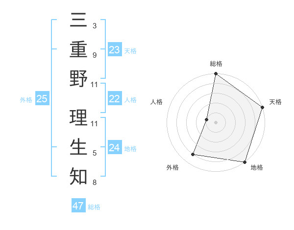 三重野 理生知さんを姓名の画数から五運を鑑定
