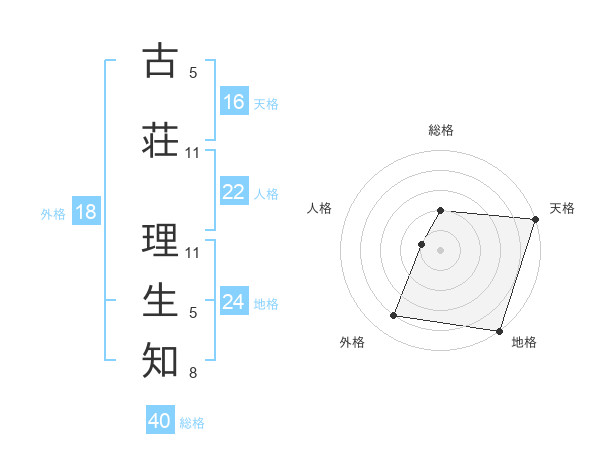 古荘 理生知さんを姓名の画数から五運を鑑定