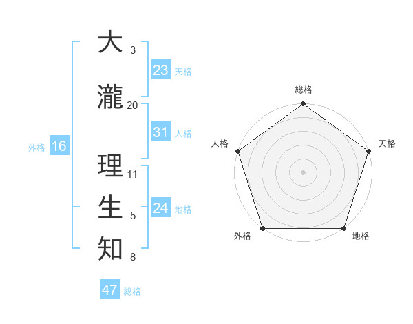 大瀧 理生知さんを姓名の画数から五運を鑑定