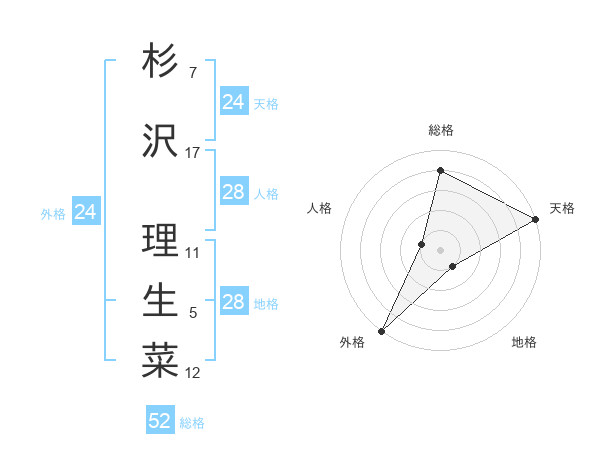 杉沢 理生菜さんを姓名の画数から五運を鑑定