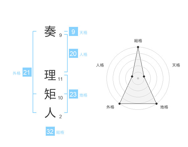 奏 理矩人さんの総格は32画の5点!