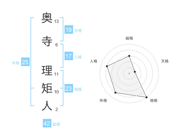 奥寺 理矩人さんを姓名の画数から五運を鑑定