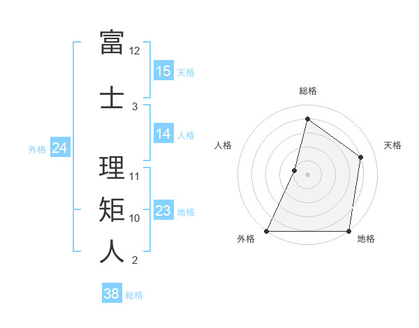 富士 理矩人さんを姓名の画数から五運を鑑定