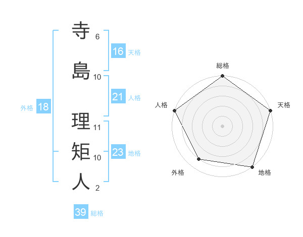 寺島 理矩人さんの総格は39画の5点!