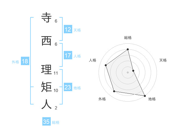 寺西 理矩人さんを姓名の画数から五運を鑑定