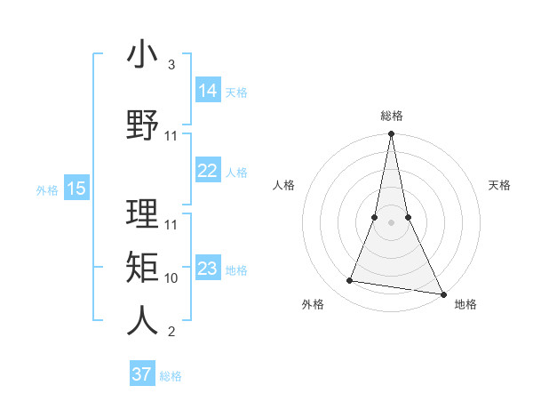 小野 理矩人さんを姓名の画数から五運を鑑定