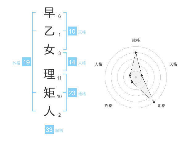 早乙女 理矩人さんを姓名の画数から五運を鑑定