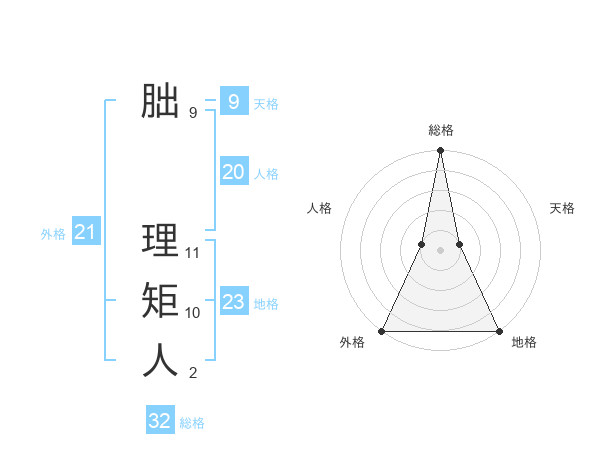 朏 理矩人さんの総格は32画の5点!