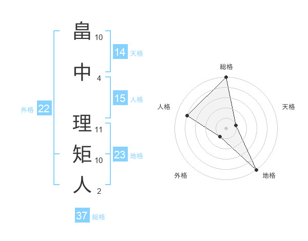 畠中 理矩人さんの総格は37画の5点!
