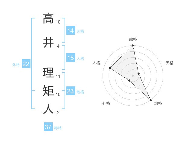 高井 理矩人さんを姓名の画数から五運を鑑定