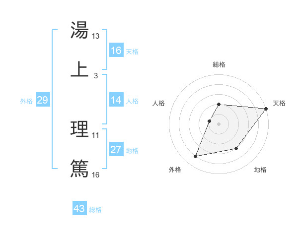 湯上 理篤さんを姓名の画数から五運を鑑定