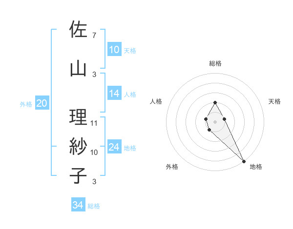 佐山 理紗子さんを姓名の画数から五運を鑑定