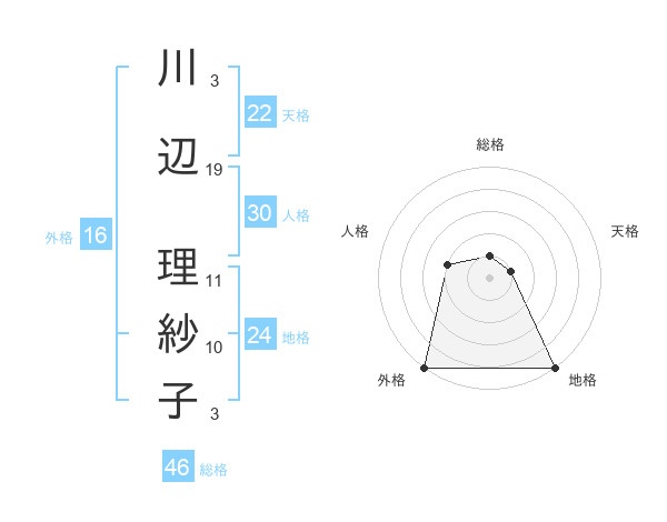 川辺 理紗子さんを姓名の画数から五運を鑑定