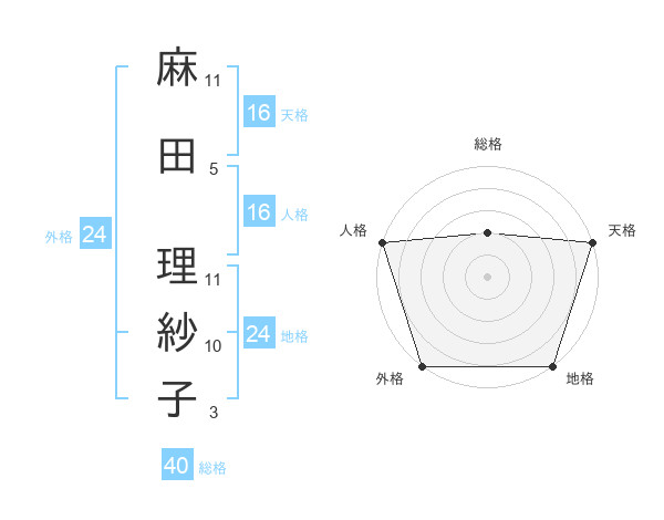 麻田 理紗子さんの地格は24画の5点!