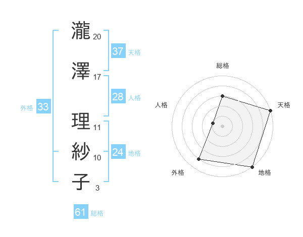 瀧澤 理紗子さんの天格は37画の5点!