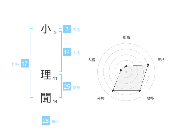 小 理聞さんの総格は28画の1点!