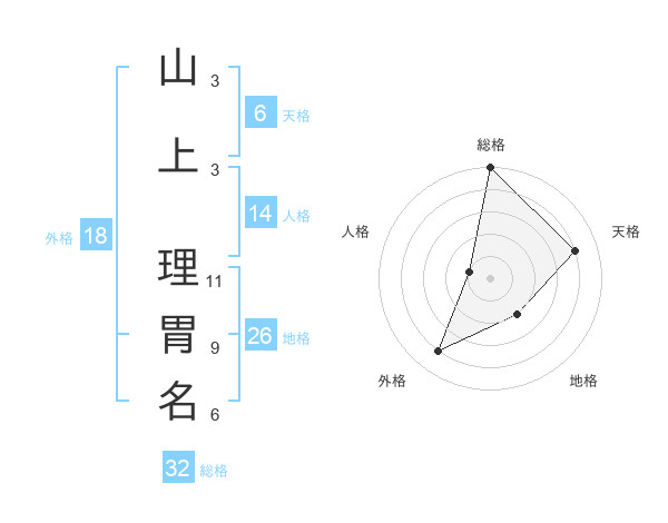 山上 理胃名さんを姓名の画数から五運を鑑定