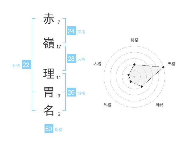 赤嶺 理胃名さんの天格は24画の5点!