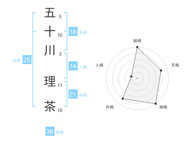 五十川 理茶さんを姓名の画数から五運を鑑定