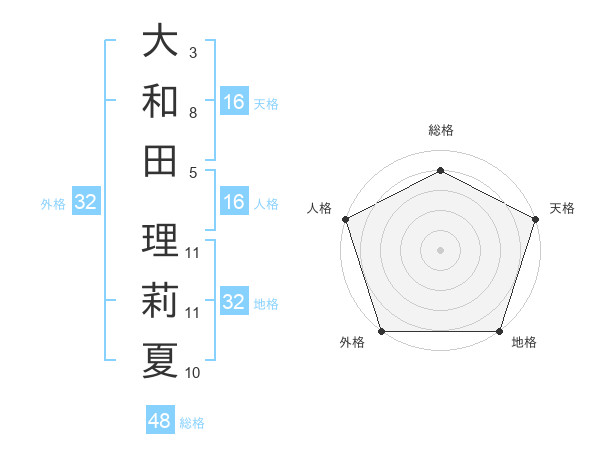 大和田 理莉夏さんを姓名の画数から五運を鑑定