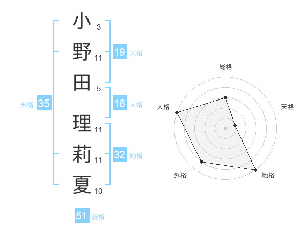小野田 理莉夏さんを姓名の画数から五運を鑑定