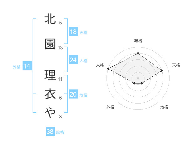 北園 理衣やさんを姓名の画数から五運を鑑定