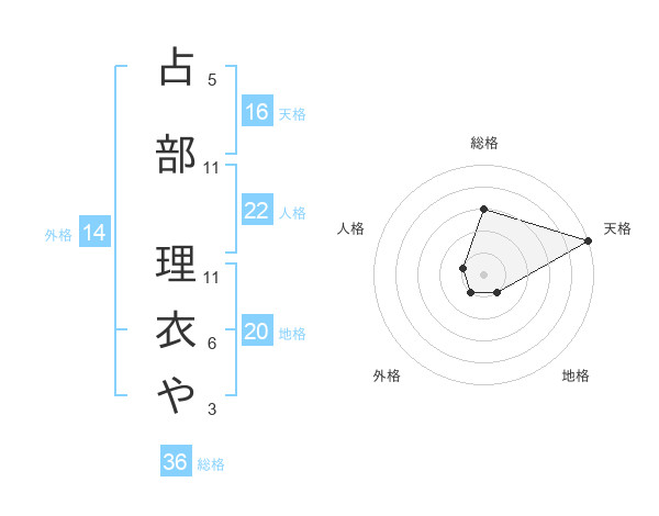 占部 理衣やさんを姓名の画数から五運を鑑定